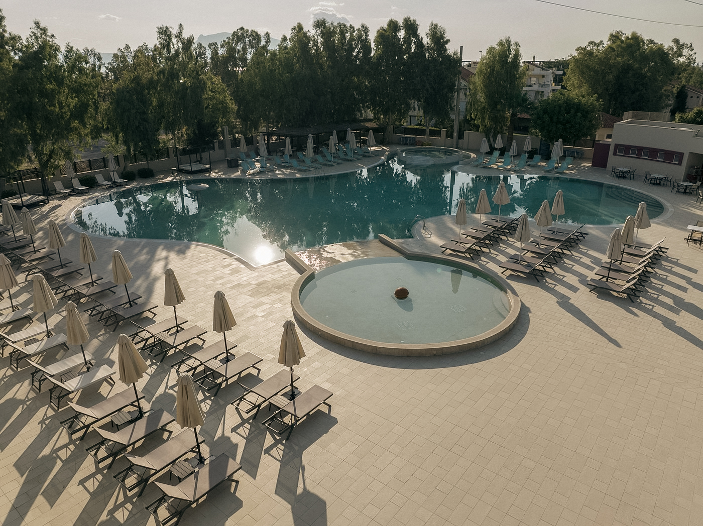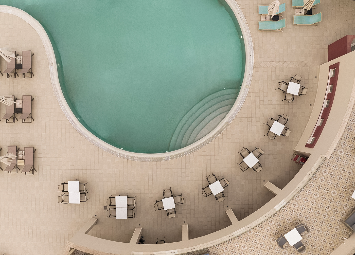 A composition of clean geometry, balanced proportions, and fluid spatial transitions, where water, light, and structure are thoughtfully integrated to shape a serene hospitality experience.