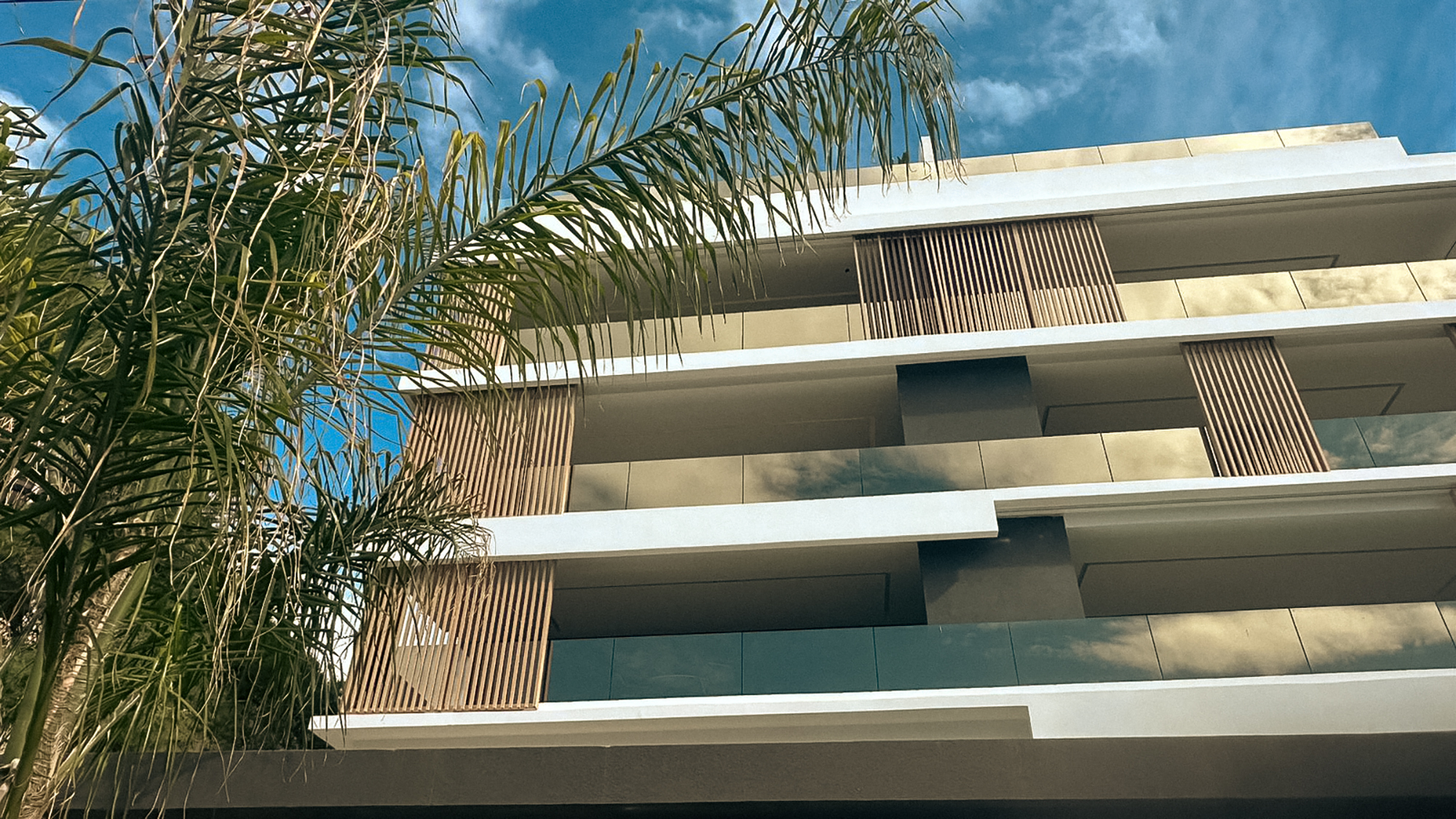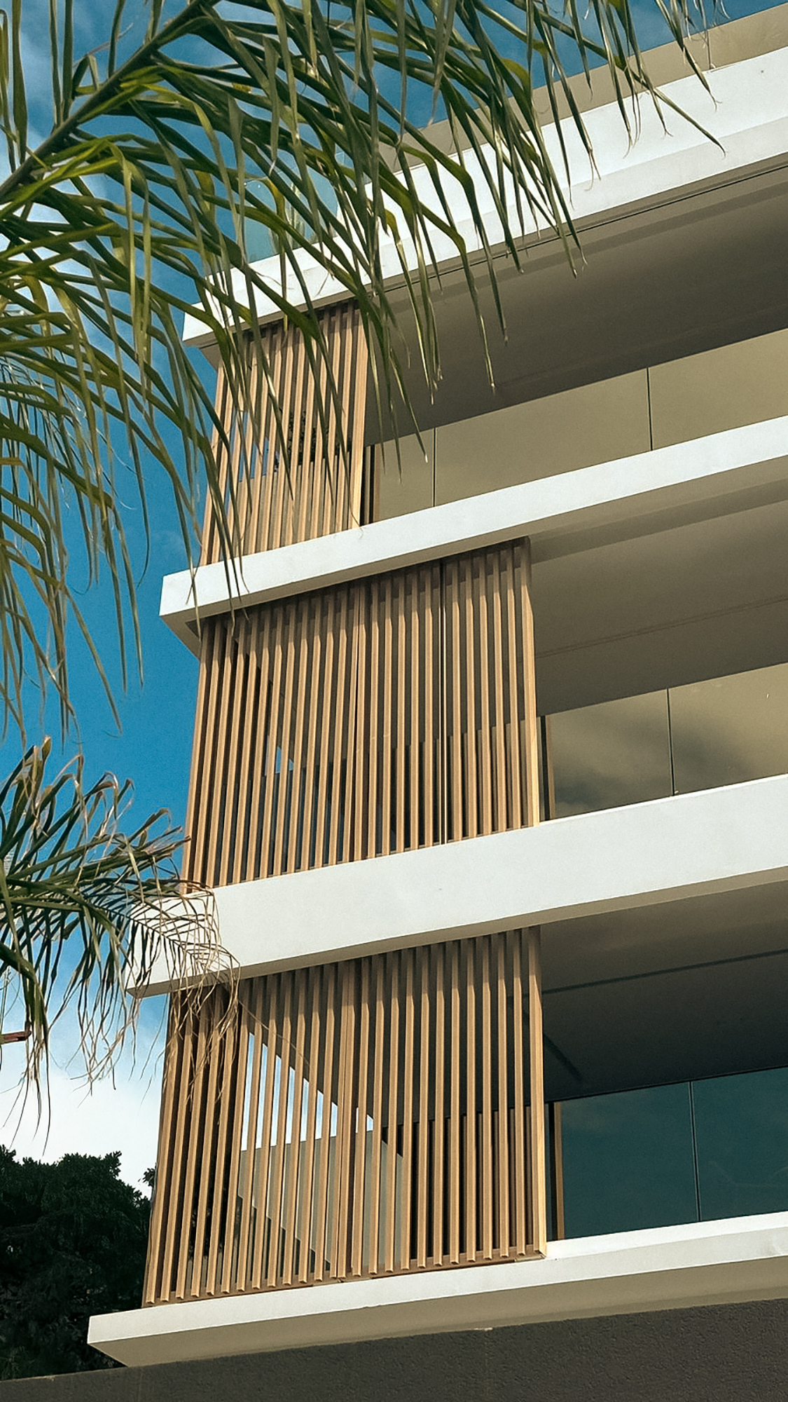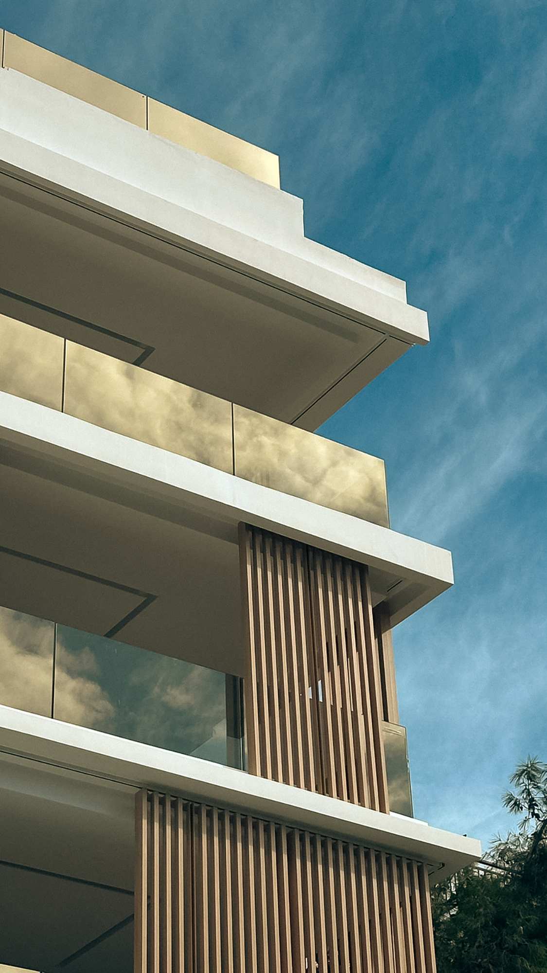 A contemporary residential building defined by clean lines, warm textures, and refined architectural detail